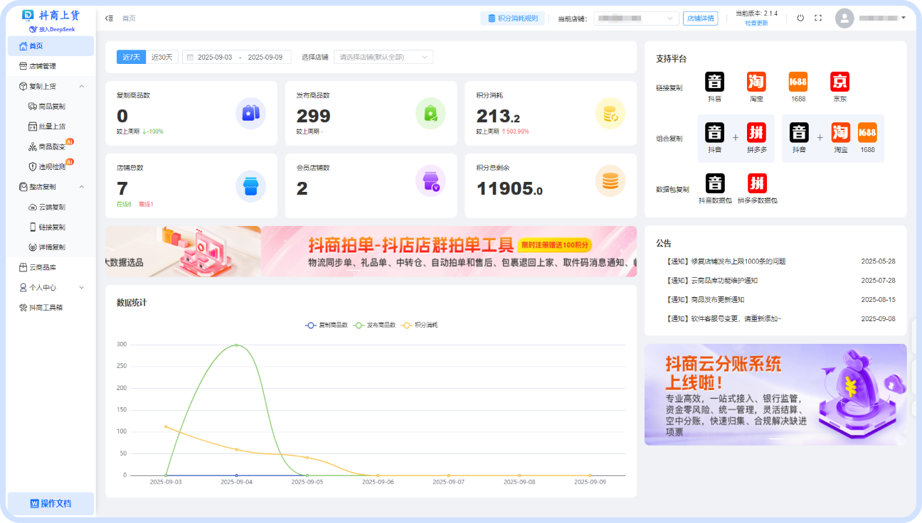 覆盖选品、上货、拍单、数据分析全流程,满足抖店运营各环节需求。