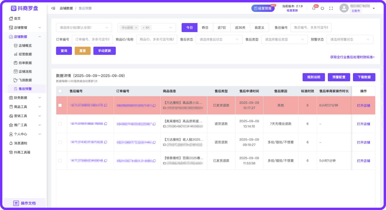 店群待发货、待售后、异常包裹、服务工单